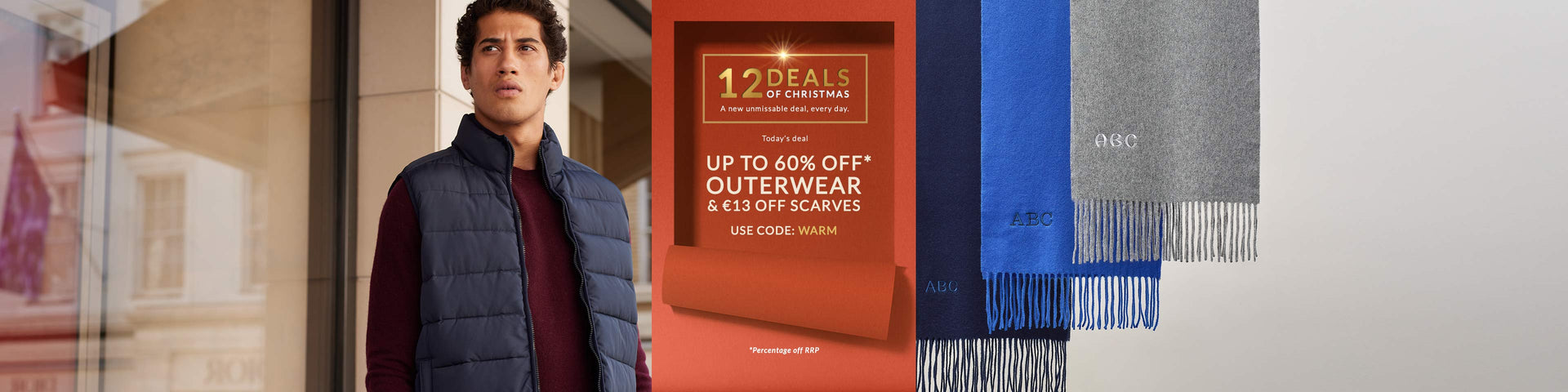 Up to 60% off outerwear & €13 off scarves with code WARM