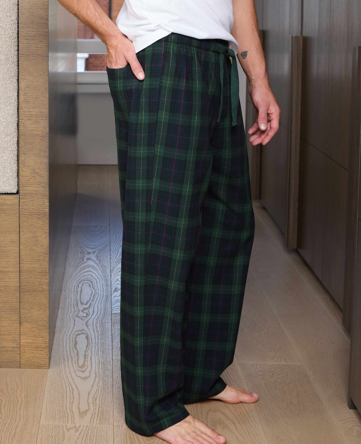 Our green checked lounge pants, thoughtfully made from brushed cotton for a warm, soft and irresistibly cosy feel. The gently brushed finish makes them ideal for cooler nights or slow weekend mornings, wrapping you in comfort without compromising breathability. A fully elasticated waistband with a contrast herringbone tie ensures a relaxed yet secure fit, while the buttoned working fly and back pocket with subtle embroidered logo add refined, practical touches. Easy to care for and machine washable, these lounge pants are not only a staple for your own downtime but also make a charming gift, especially when monogrammed for a personal touch.