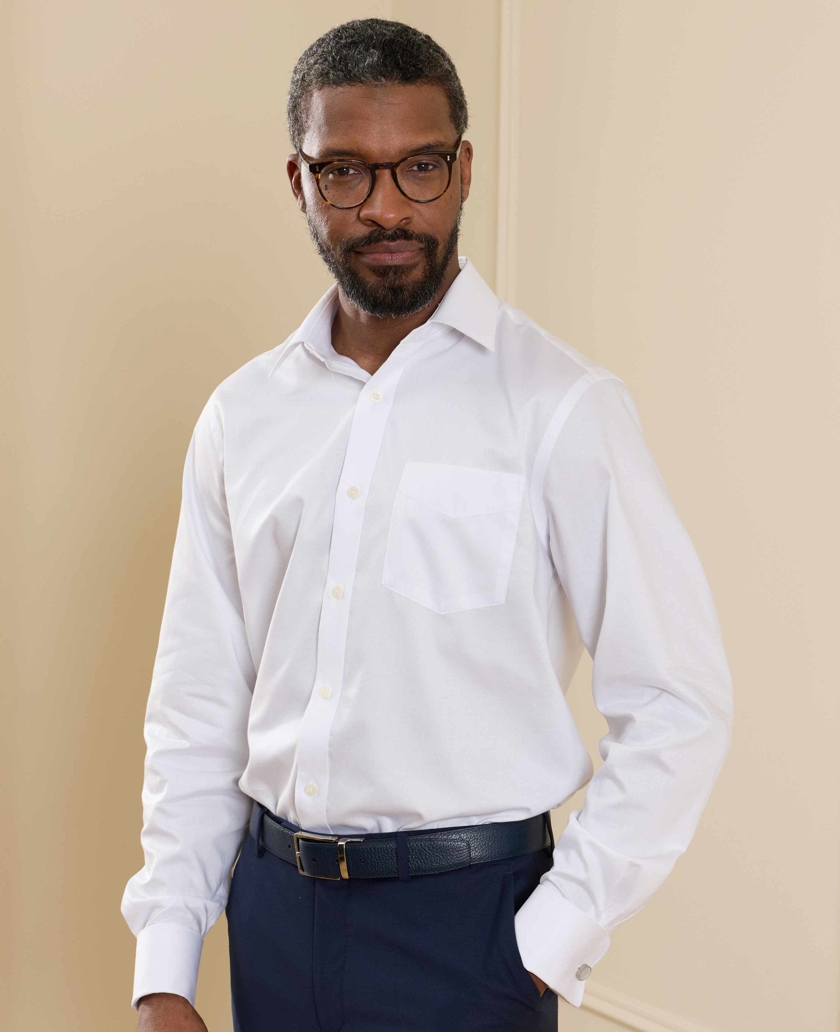 There's nothing more versatile than a crisp white shirt. Suitable for weddings, interviews, parties and much more, this classic fit style has been made from 100% BCI cotton using a twill weave. Wear it with your favourite suit or layer it underneath a fine knit jumper.