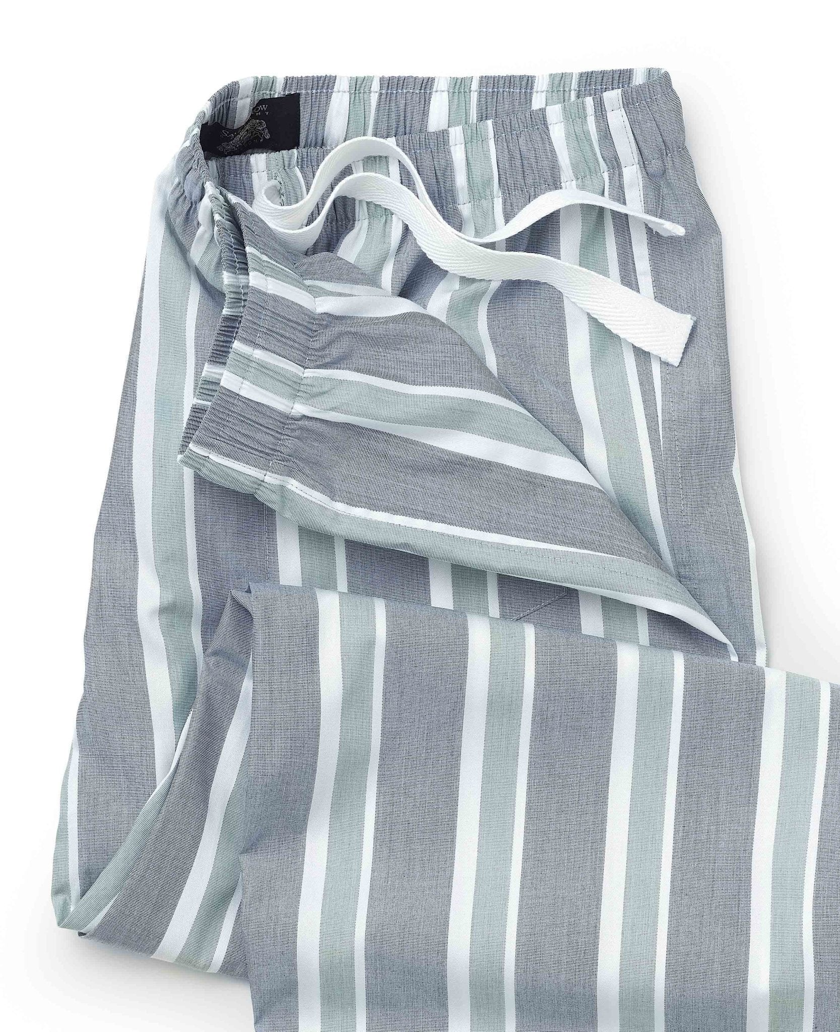 Made from cotton poplin, our green striped lounge pants are light, breathable and smooth to the touch, offering all-day comfort whether you’re sleeping or unwinding at home. The crisp poplin fabric feels fresh against the skin and won’t trap heat, making them ideal as pyjama bottoms as well as easy daytime loungewear. A fully elasticated waistband with a contrast herringbone drawstring ensures a relaxed, adjustable fit, while the buttoned fly and single back pocket with embroidered logo add subtle structure. Comfortable enough for long evenings on the sofa and practical enough for everyday wear, they’re a versatile addition to any downtime wardrobe.