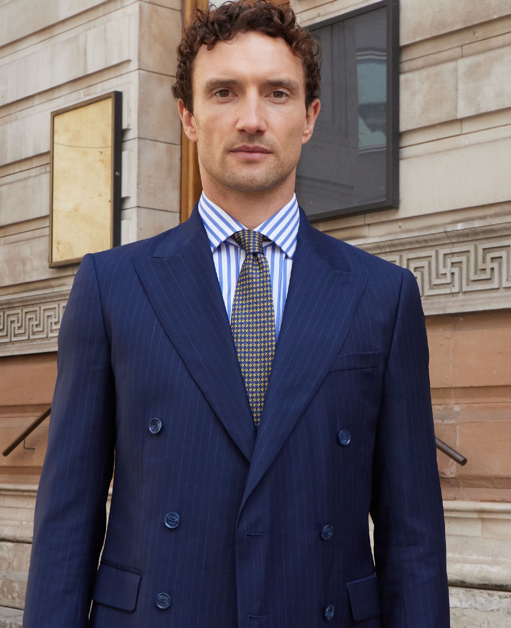 This blue and white striped shirt is shaped in a generously proportioned classic fit, ideal for those who value ease without compromise. Made from 100% cotton poplin, the fabric is smooth, breathable and softly structured, with an easy-iron finish that holds its crispness throughout the day. The curl-resistant cutaway collar with removable stays, double cuffs and neatly taped French seams reflect a quiet attention to detail that speaks to our heritage of craftsmanship since 1938. With a split yoke for improved movement, long tails for a tidy tuck and a practical chest pocket, this formal shirt balances form and function for everything from boardroom formality to everyday wear.