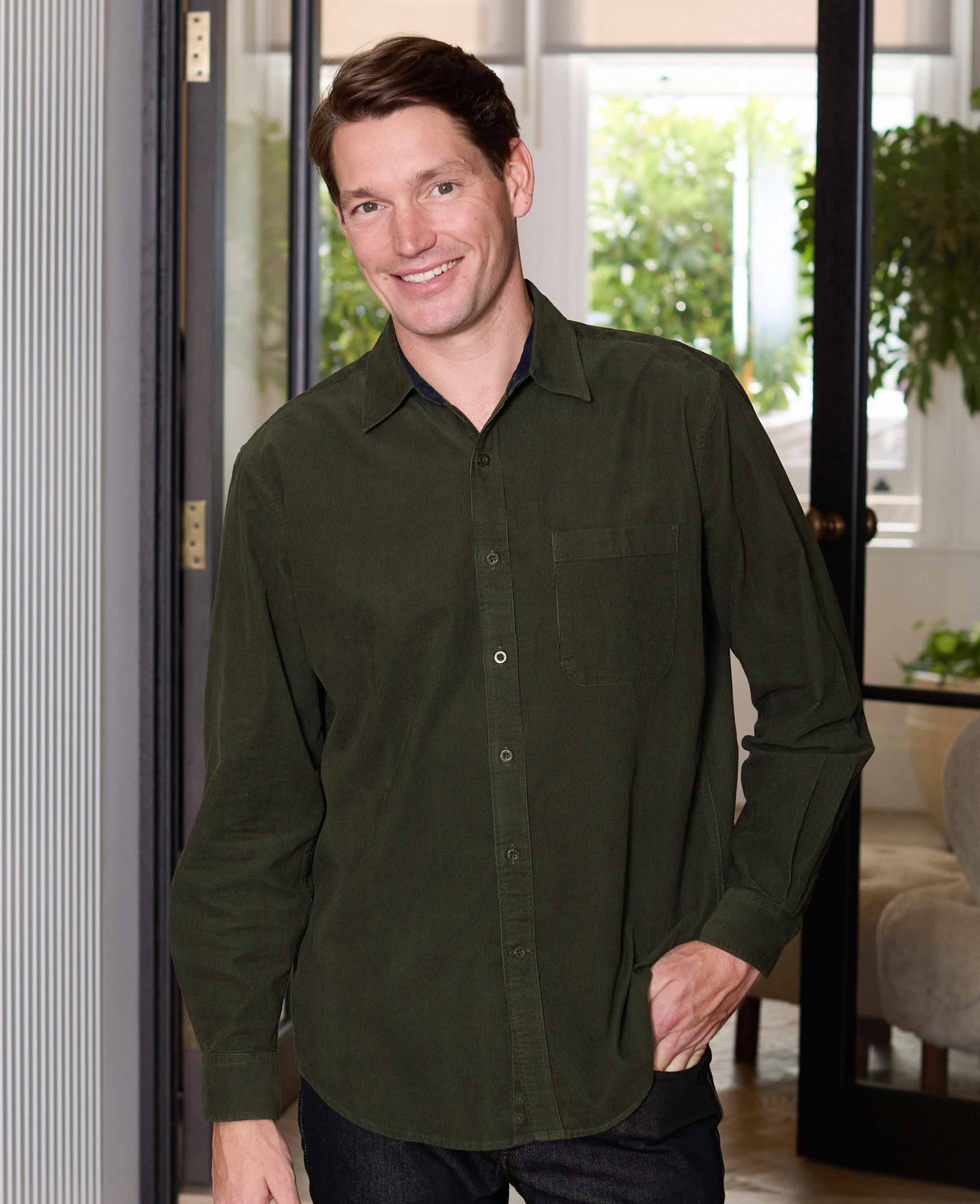 This khaki casual shirt is crafted from pure cotton babycord, a fine, narrow-waled corduroy known for its ultra-soft feel and subtle texture. Warm yet breathable, it’s the ideal layer for transitional weather and cooler months, offering all-day comfort without bulk. Designed in a classic fit with a relaxed drape, it features a soft collar, single cuffs, split yoke, chest pocket and long tails. Smart enough for casual Fridays yet laid-back enough for weekends, this is a versatile wardrobe staple.