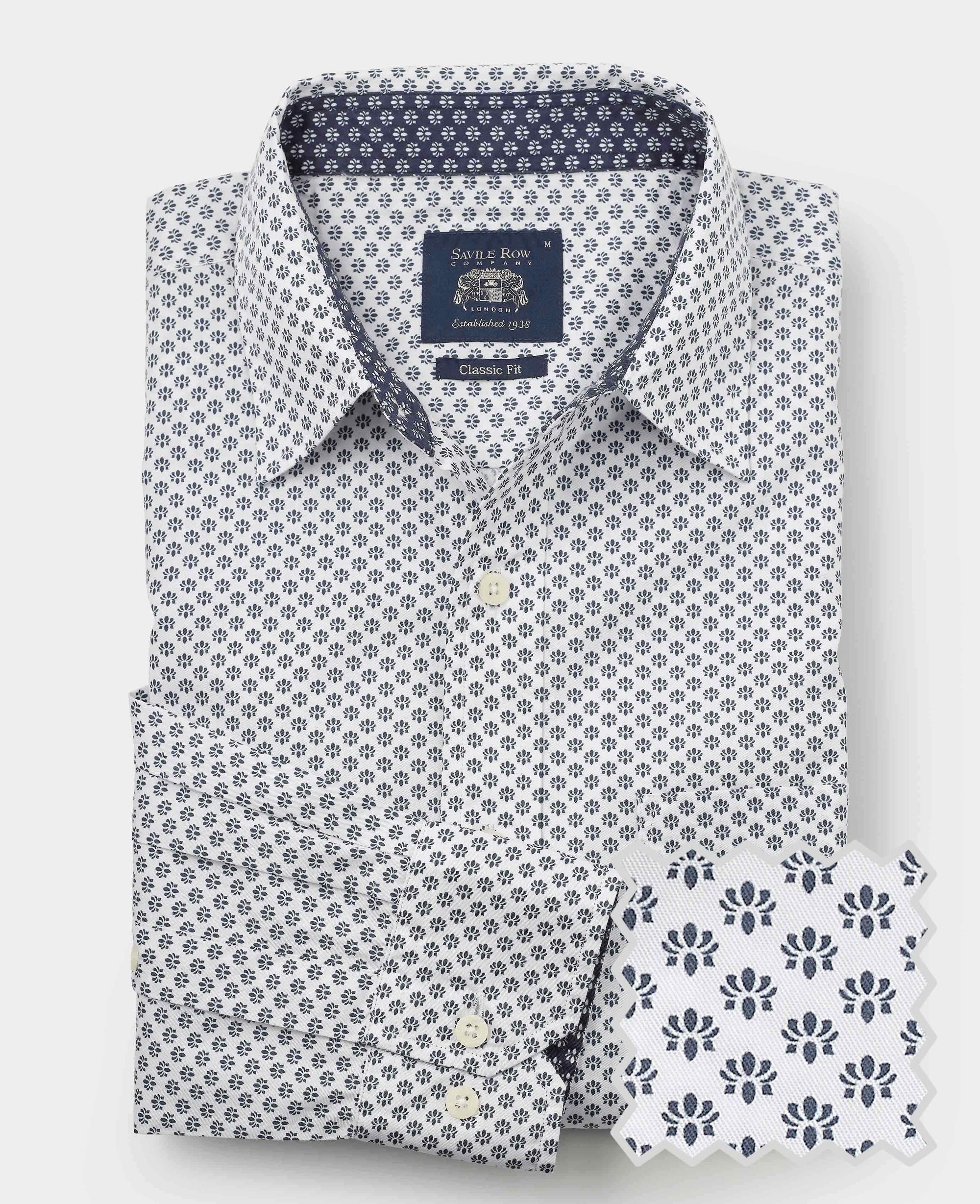 Effortlessly stylish and perfect for off-duty occasions, this white printed casual shirt is a versatile addition to your wardrobe. Crafted from soft, breathable cotton, it ensures all-day comfort, while the subtle printed design gives it a modern touch. Details such as a contrast print inside the back neck and cuffs, elevate its character, adding a hint of personality to your outfit for the weekend.