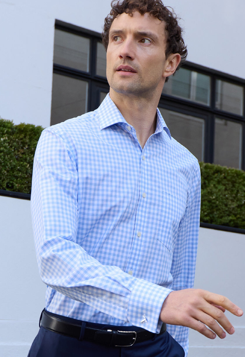 Colour Swatch for Blue White Check Slim Fit Shirt - Single Cuff in #ffffff