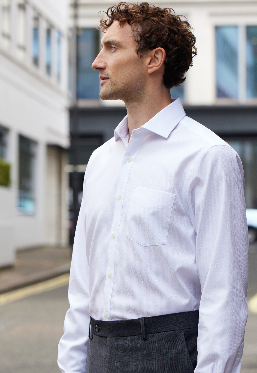 Colour Swatch for Pink Prince of Wales Check Classic Fit Contrast Collar Formal Shirt With White Collar & Cuffs in #ffffff