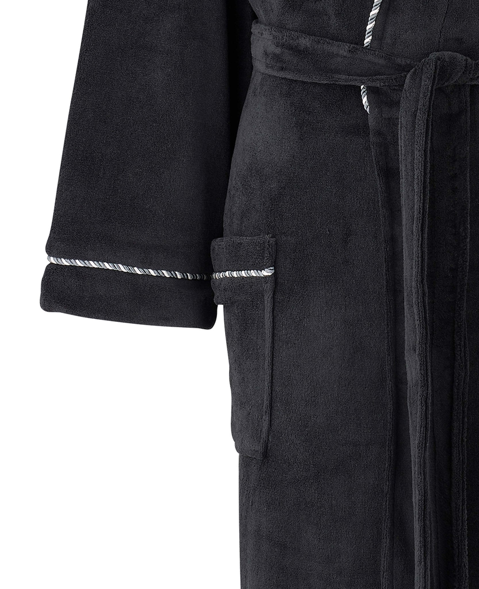 Wrap yourself in luxury with our superbly soft black fleece dressing gown - made from a lightweight yet cosy fleece fabric. Accented with a contrasting trim, the classic design comes complete with two convenient patch pockets at the front.