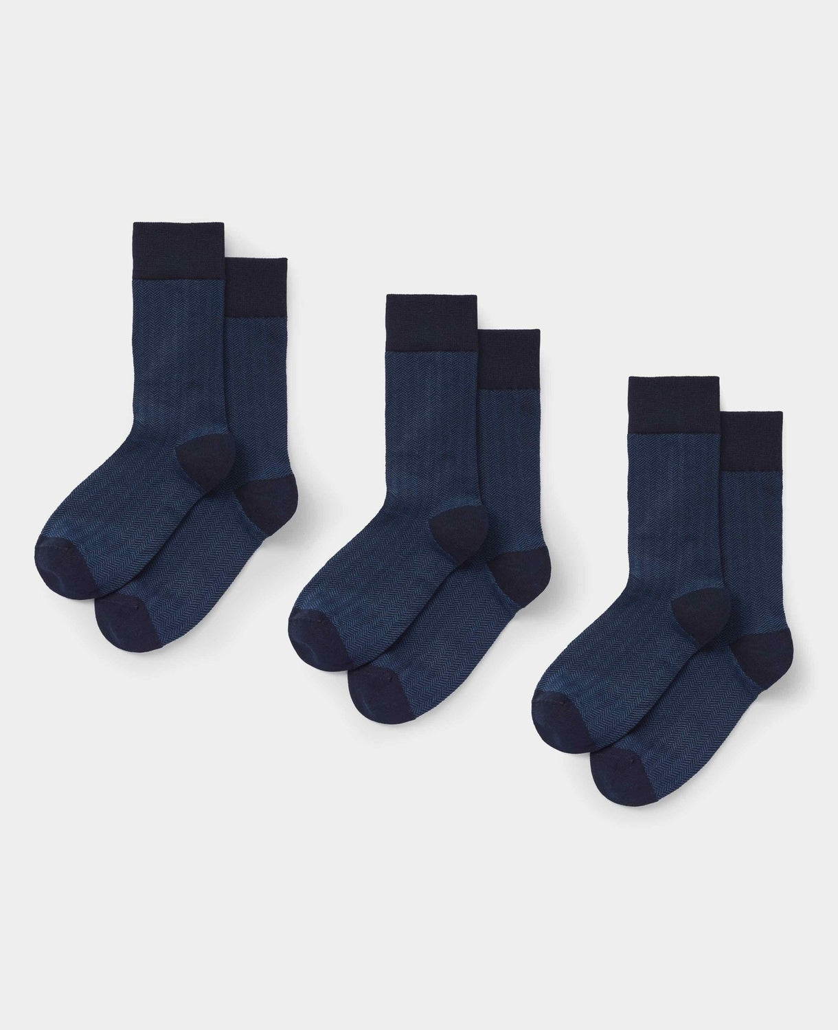Our blue men's herringbone socks bring subtle pattern and premium comfort to your sock drawer. Made from a soft, breathable cotton-rich blend with just the right amount of stretch, they're built to stay in place and keep their shape. The timeless herringbone weave is paired with contrast navy toes and ribbing for a refined, modern finish. Durable, stylish and unmistakably Savile Row.
