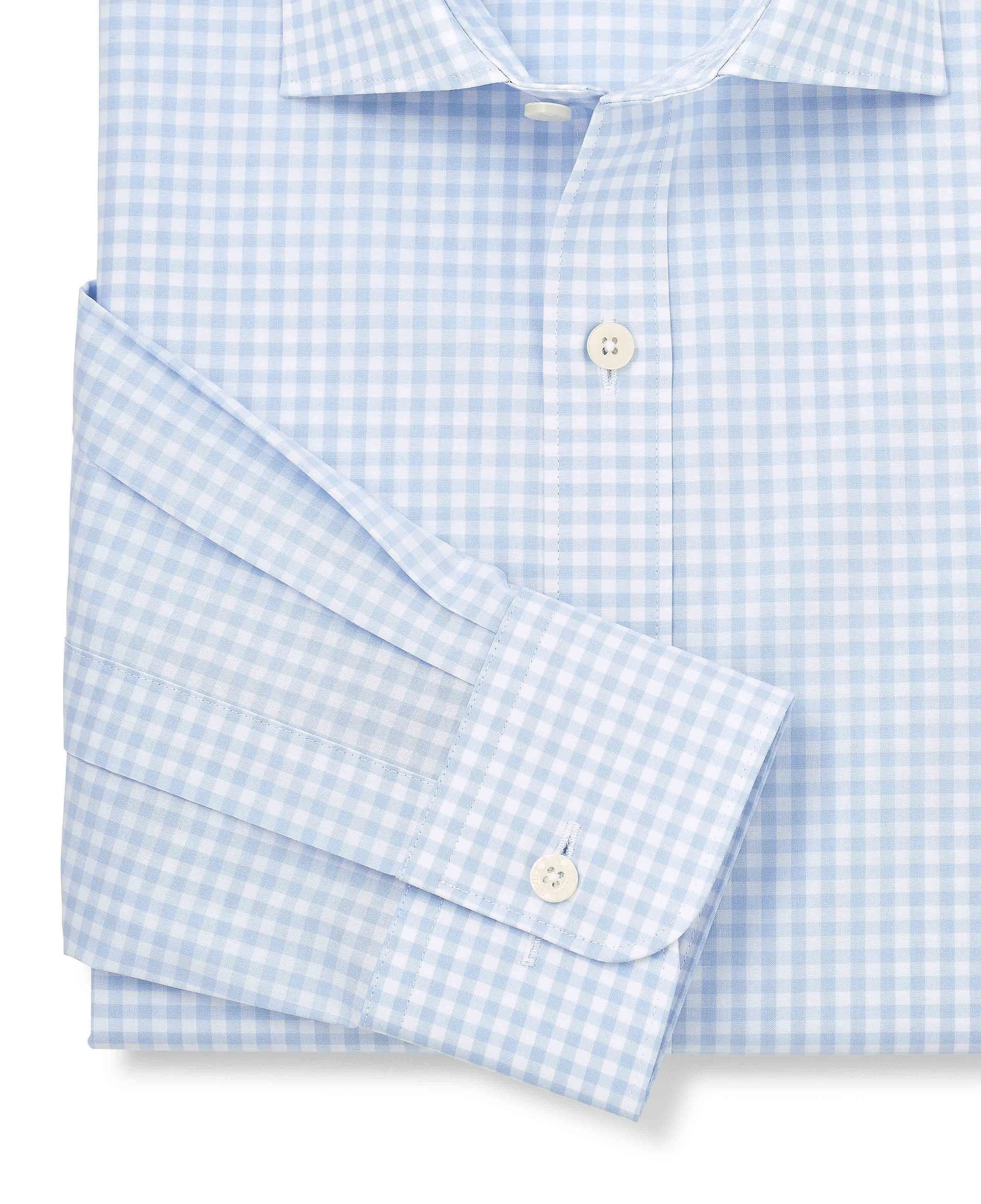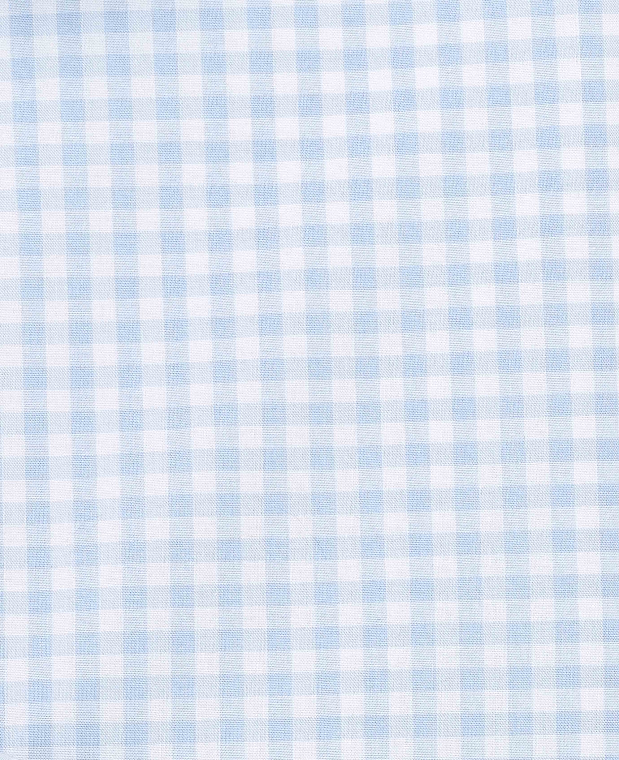 - Blue Gingham Check Cotton Poplin Classic Fit Formal Shirt - Single Cuff