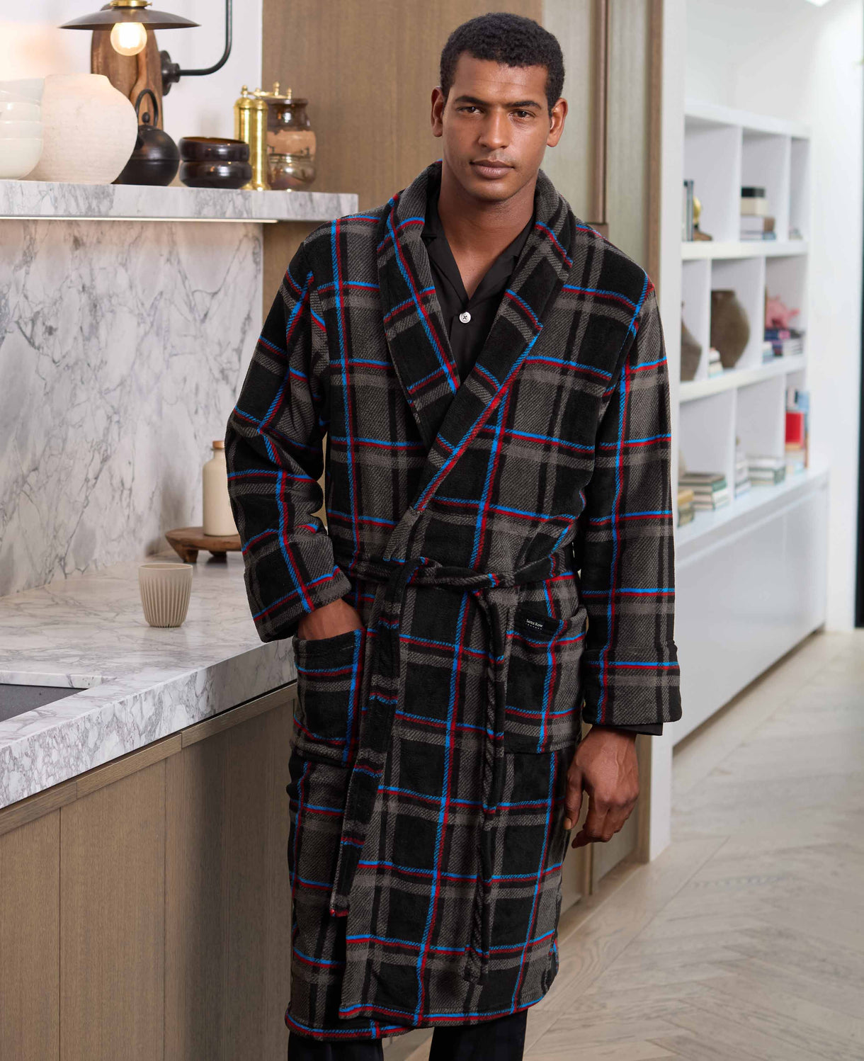 Wrap yourself in cosy comfort with our blue multi check fleece dressing gown, designed to keep you warm without weighing you down. Made from lightweight fleece, it offers a luxuriously soft feel with plenty of warmth - perfect for lazy mornings or relaxing evenings. The classic multi check pattern brings a timeless touch, while two handy patch pockets and a back neck hanging loop make it as practical as it is snug.