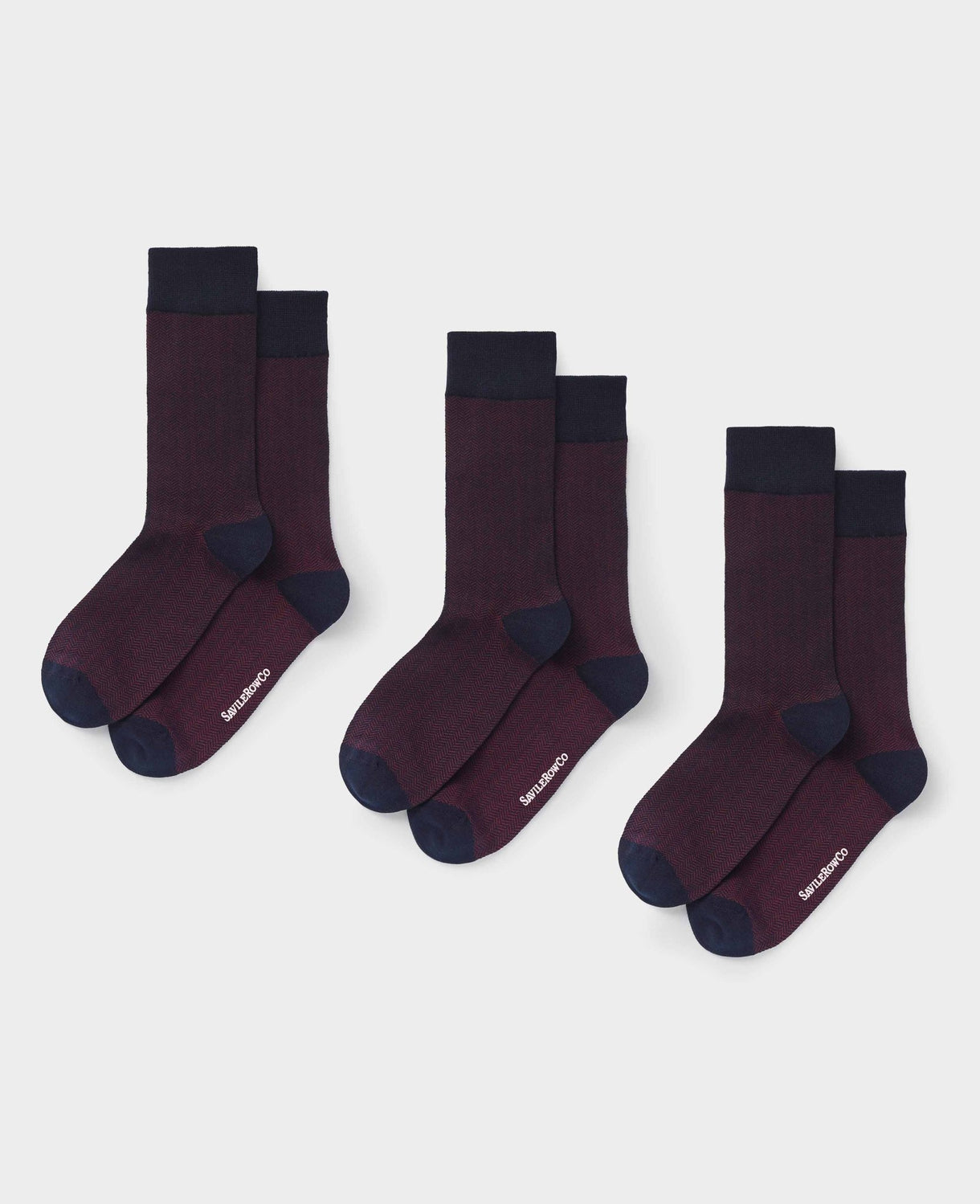 - Burgundy Cotton Rich Herringbone Three Pack Socks