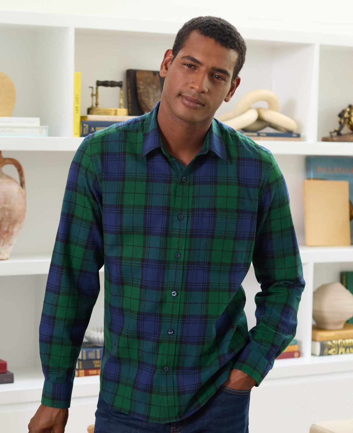 With its rich green and blue check pattern, this slim-fit shirt is a natural choice for the autumn/winter season, bringing depth, warmth and a touch of colour to cooler days. Crafted from 100% brushed cotton, the fabric is soft, breathable and gently insulating, with a brushed finish that offers a flannel-like texture ideal for layering. The slim, gently tapered cut flatters all builds while maintaining ease of movement, making it both comfortable and contemporary. Finished with a soft collar, single cuffs, split yoke and two back darts.