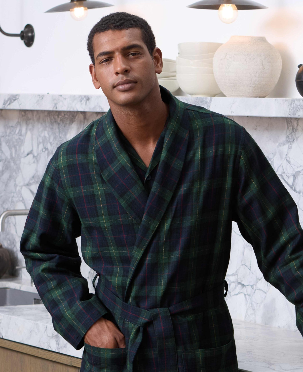 Made from brushed cotton for a soft, warm and supremely cosy feel, this men’s dressing gown is perfect for chilly mornings or winding down in the evening. The classic robe features a shawl collar, two practical patch pockets and a mid-calf length for just the right amount of coverage. Machine washable, it’s easy to care for and designed to last.