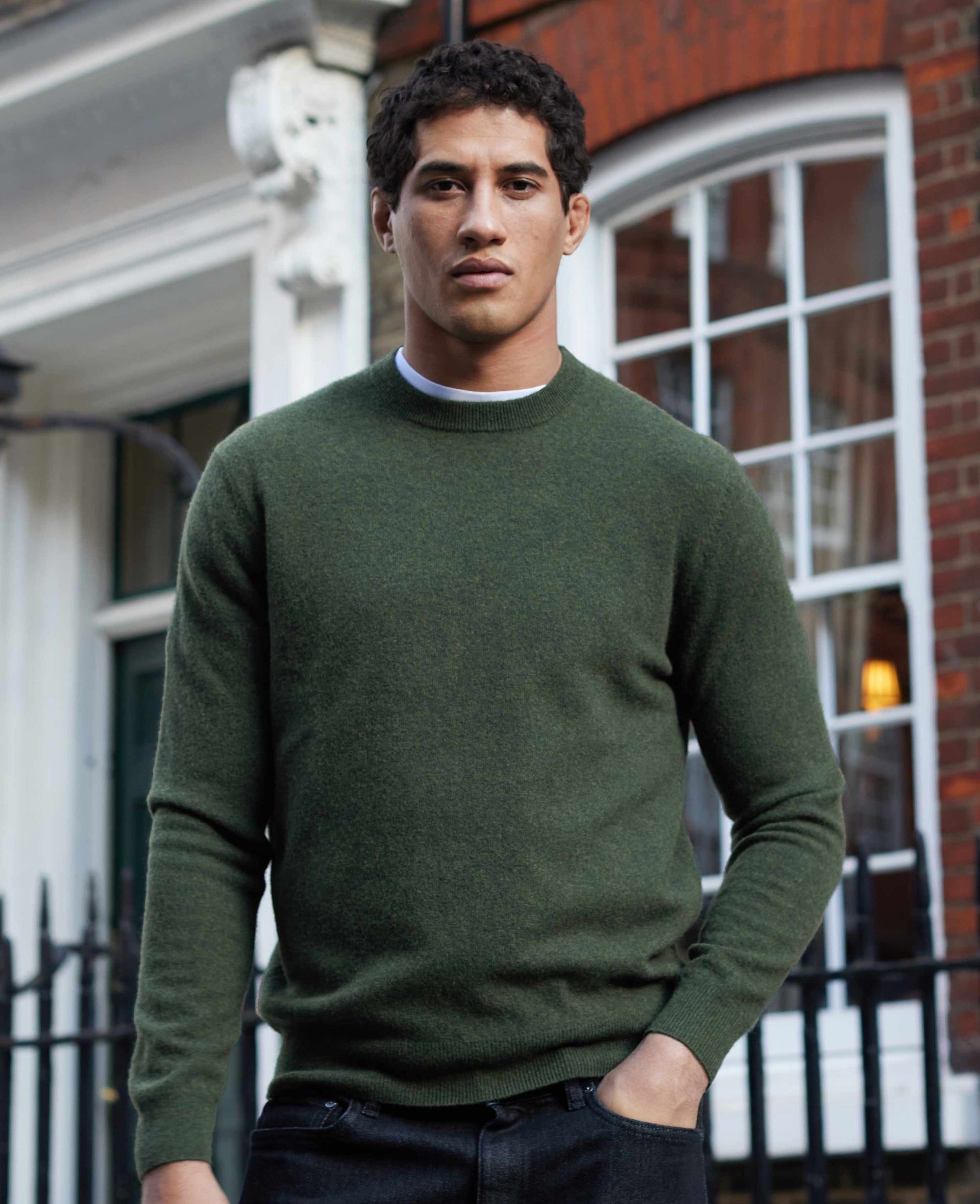 Elevate your everyday wardrobe with our green wool-cashmere blend crew neck jumper, a timeless piece crafted for comfort, style and versatility. Made from a blend of extra fine Merino wool and cashmere, this men’s jumper offers the perfect balance of softness, warmth and breathability. The wool provides natural temperature regulation and durability, while the touch of cashmere adds a layer of refined softness that feels luxurious against the skin. Knitted in a 12-gauge finish, it has a smooth, lightweight handle that’s ideal for layering under jackets or wearing on its own during the transitional months. The regular fit and fully fashioned sleeves give it a clean, flattering silhouette, while the classic crew neck makes it a true wardrobe staple.