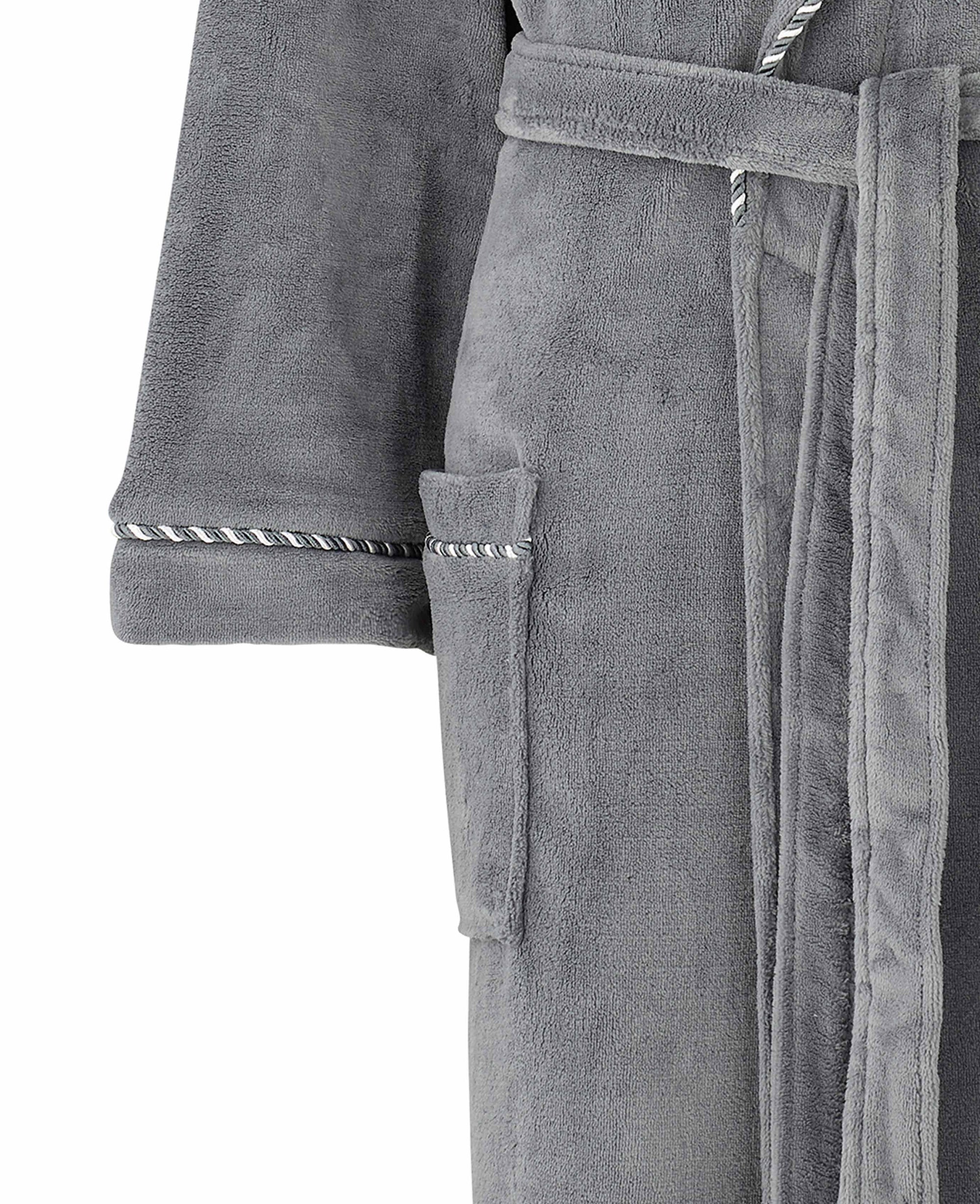 You'll be the best dressed at breakfast with our luxuriously soft grey fleece dressing gown. Made from a lightweight fleece fabric, the timeless design has been accented with a contrast trim and finished with two well-sized patch pockets at the front.