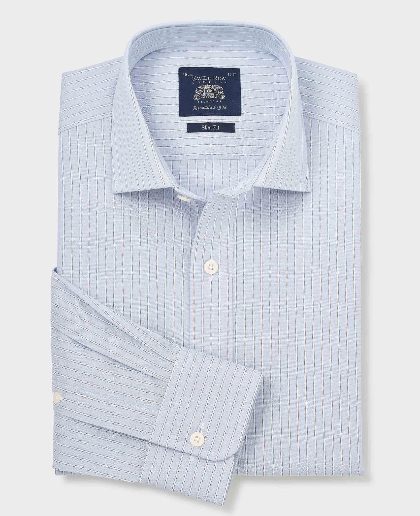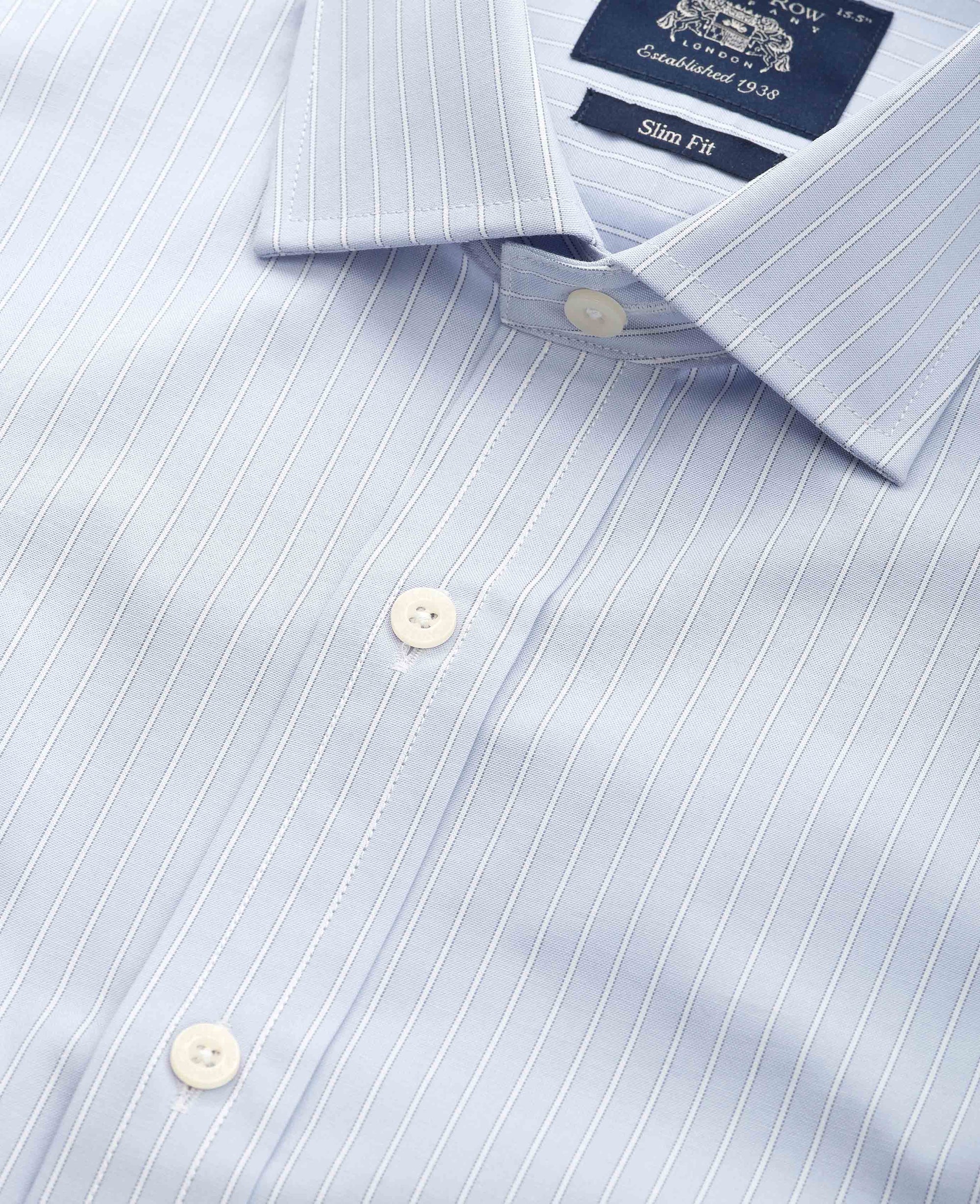 - Light Blue Pinpoint Cotton Slim Fit Stripe Formal Shirt - Single Cuff
