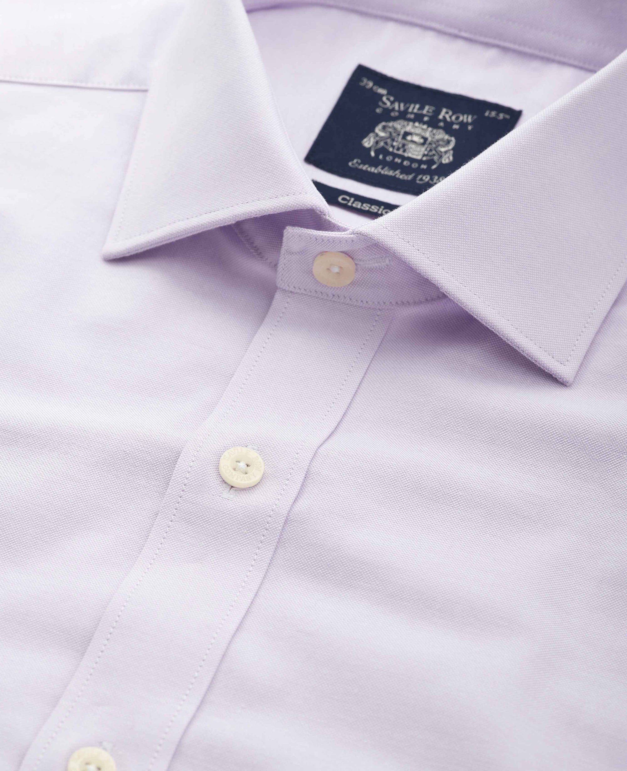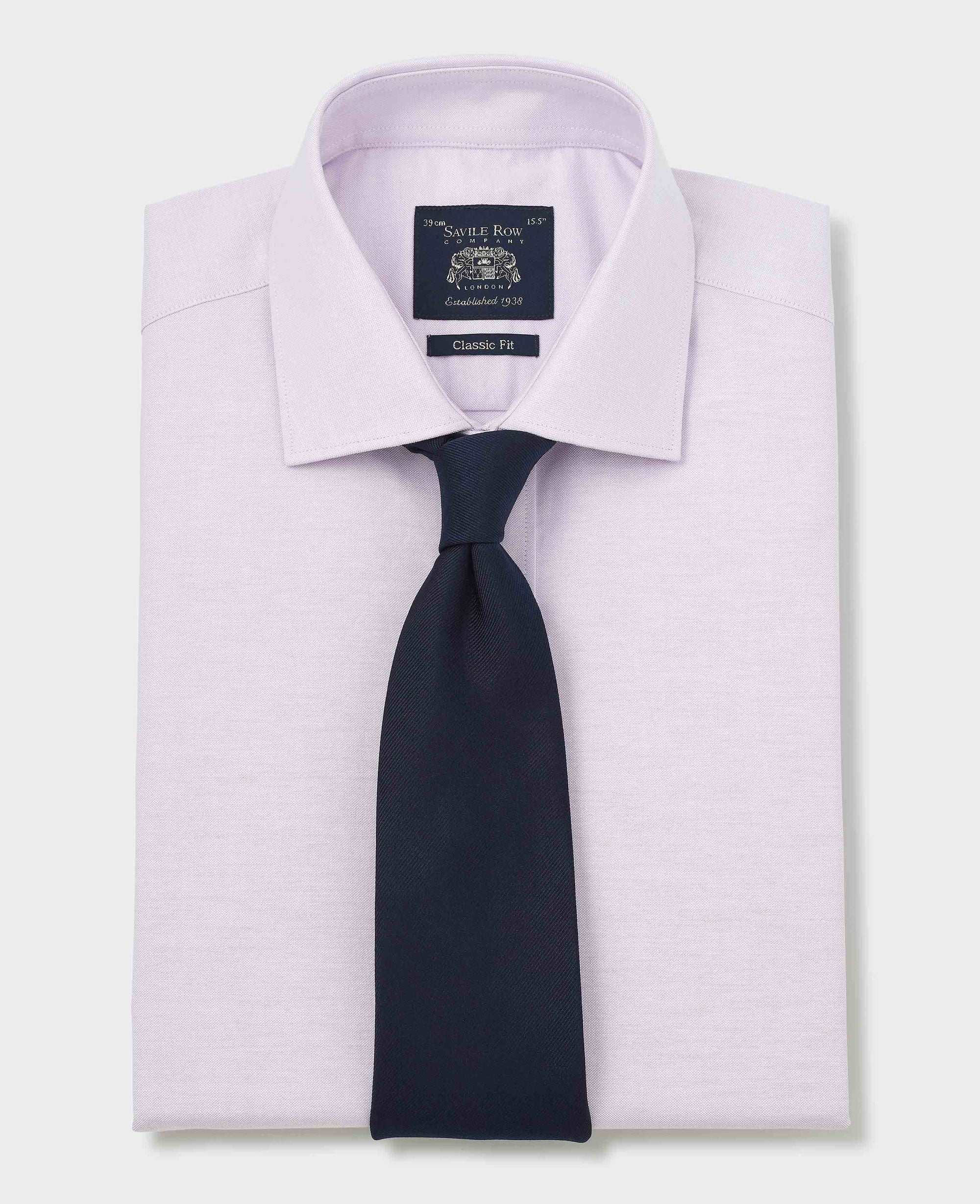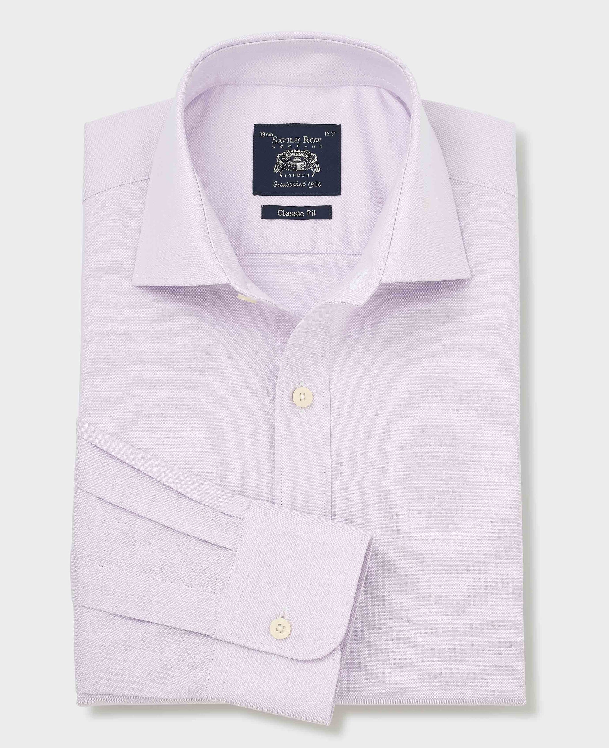 Add a refined touch to your wardrobe with this lilac classic fit formal shirt, crafted from pinpoint cotton. The durable pinpoint weave creates a subtle texture that gives the fabric a crisp, smooth finish while remaining soft and breathable, making it ideal for all-day wear. Generously proportioned in a classic fit, it offers comfort without compromising style, and the curl-resistant cutaway collar with removable stay ensures a polished appearance.