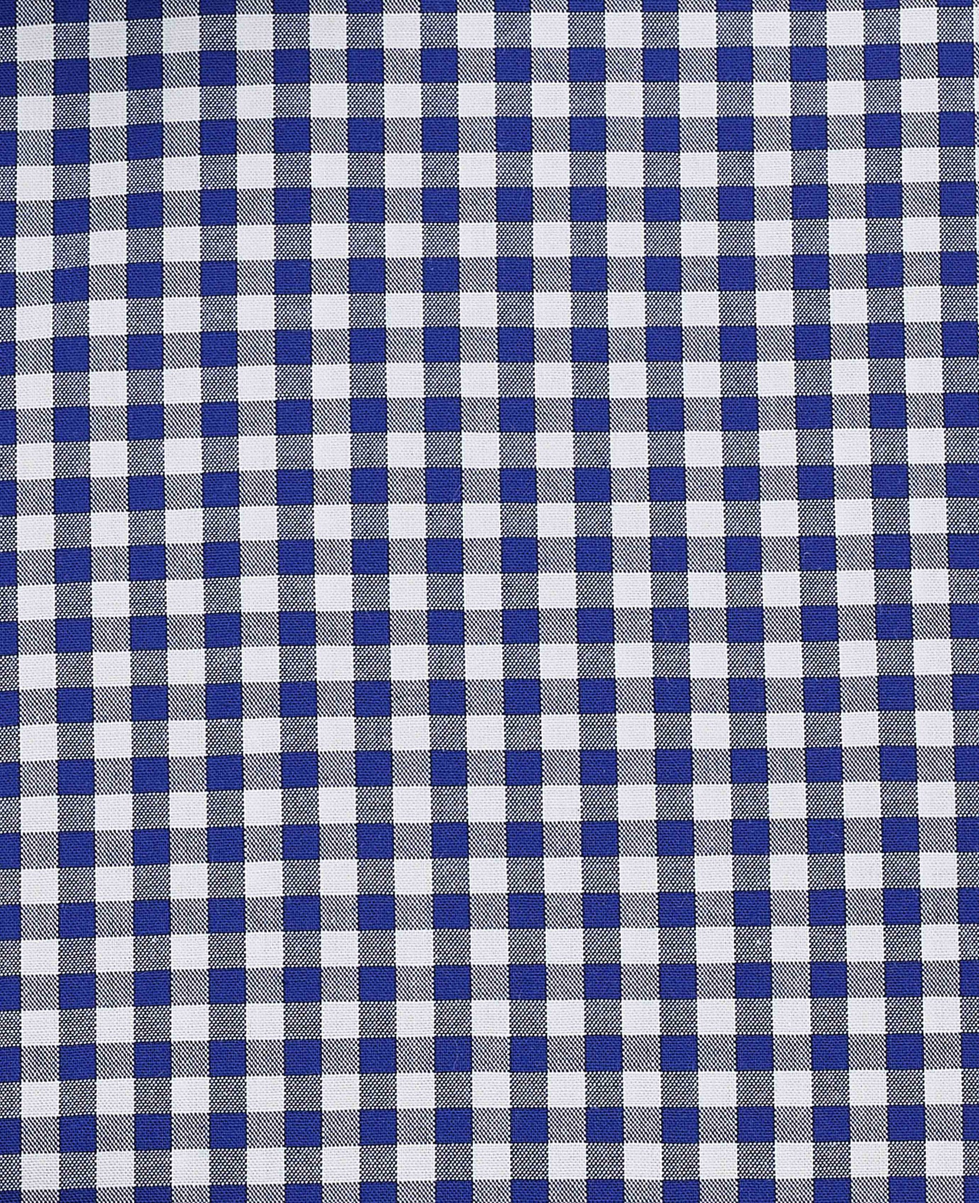 - Navy Cotton Poplin Gingham Check Slim Fit Formal Shirt - Single Cuff