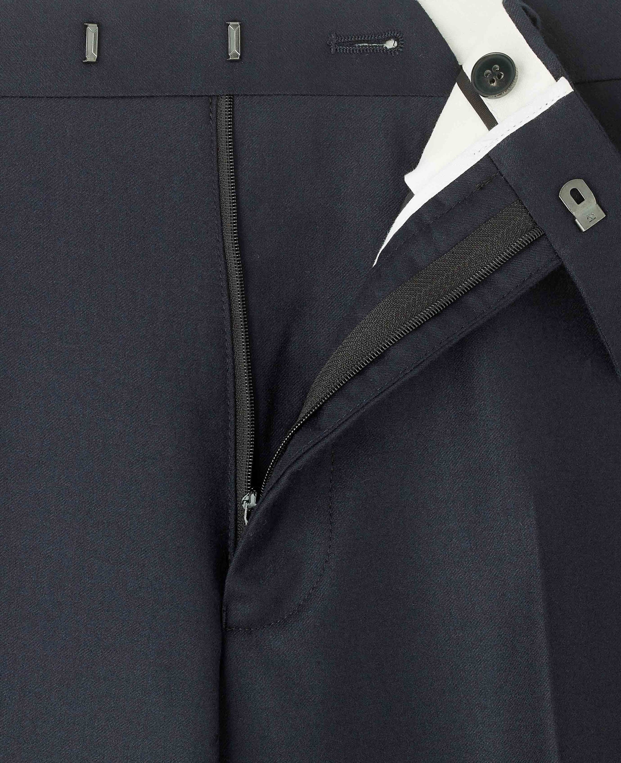 Our navy business trousers are a timeless choice for cooler seasons. Cut in a straight-leg silhouette from a luxurious fine wool flannel, they would look great teamed with a white shirt and brown shoes.