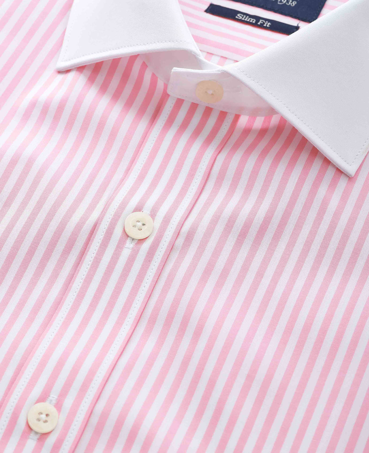 This pink and white striped Winchester shirt is crafted from 100% poplin. The fabric is soft, breathable and finished with an easy-iron treatment, ensuring you stay sharp all day. The slim, gently tapered fit flatters a variety of builds, while expert tailoring details, like a curl-resistant cutaway collar, pucker-free French taped seams and a split back yoke, deliver a refined silhouette with exceptional comfort. A wardrobe must-have, this formal shirt reflects a heritage of craftsmanship dating back to 1938, making it a confident choice for those who appreciate subtle sophistication.