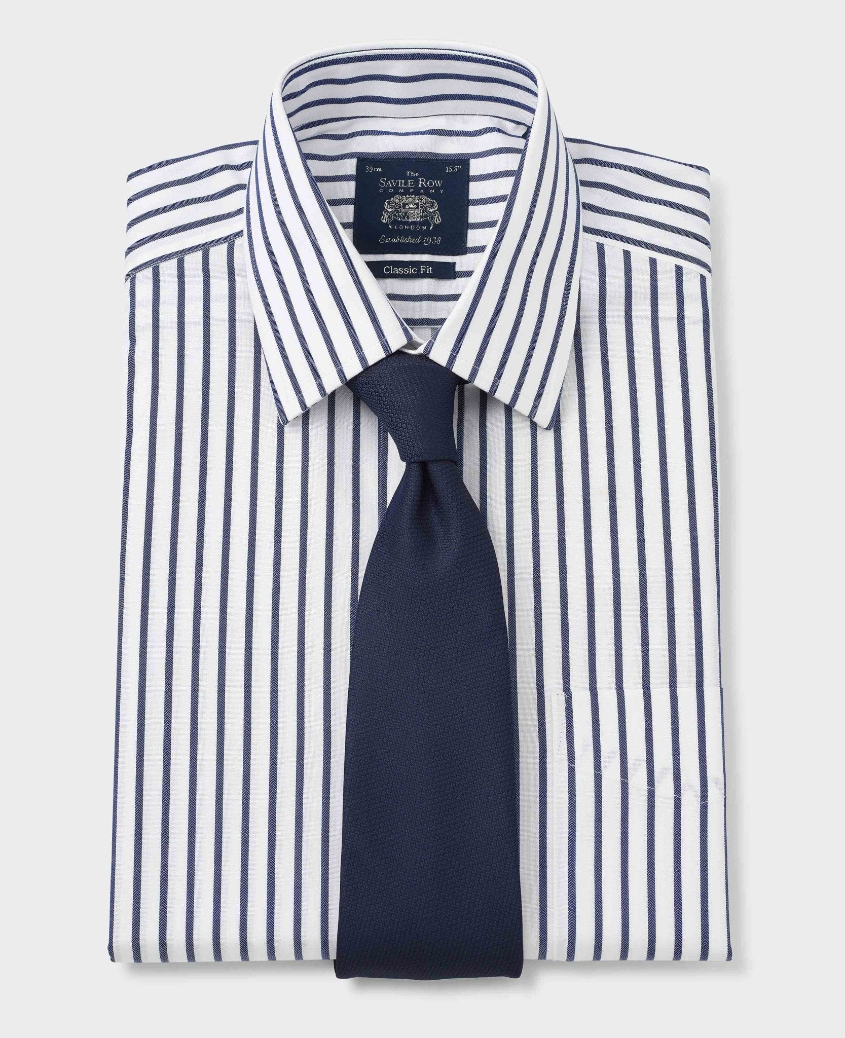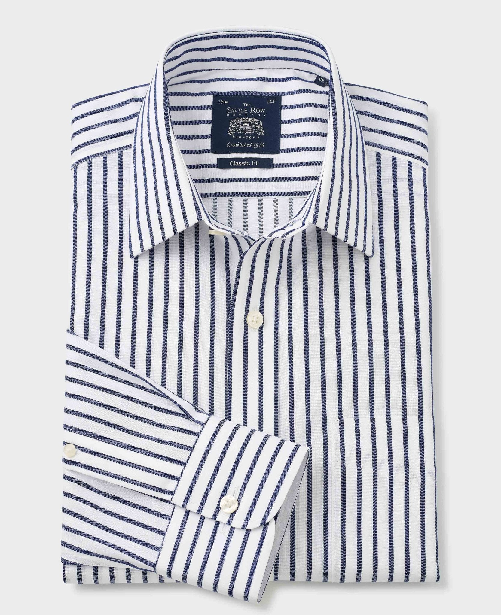 A practical and luxury choice for formal events, this white and navy stripe non-iron shirt looks great with a wide range of ties. Making busy mornings easier, it's made from breathable cotton that's cleverly designed to throw on and go.