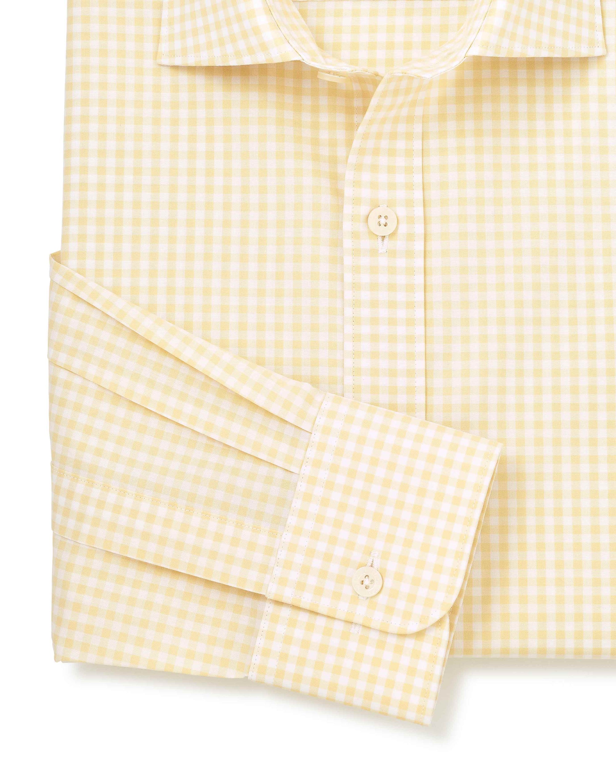 - Yellow Cotton Poplin Gingham Check Classic Fit Formal Shirt - Single Cuff
